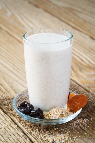 Kefir roztrzepujemy z jogurtem, żółtkiem i miodem oraz z sokiem i skórką z cytryny. Następnie mieszamy z orzechami, bakaliami oraz goździkami. Podajemy z opieczonymi w tosterze kromkami chałki lub piernikiem.