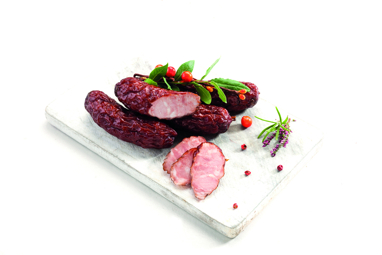 Kiełbasy Myśliwska i Jałowcowa mogą być również świetnym dodatkiem do dań na ciepło. Dzięki owocom jałowca, długiemu procesowi suszenia oraz wędzenia, nadają one potrawie charakterystycznego, wyrazistego smaku.