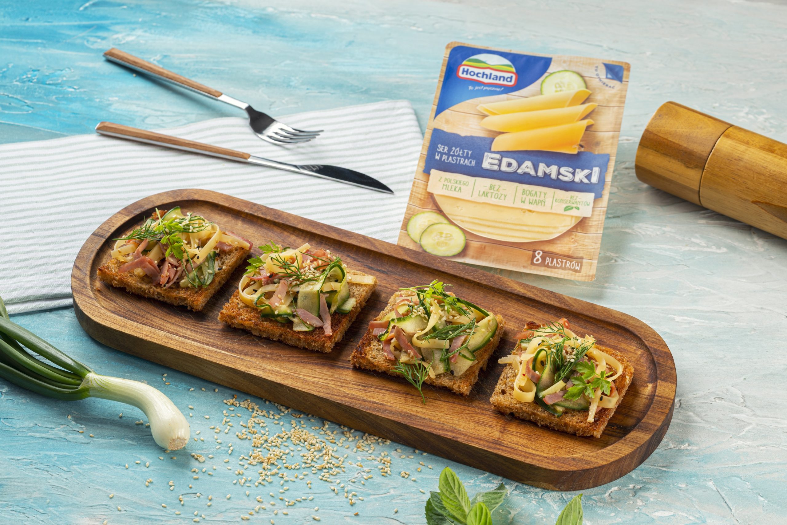 A oto kulinarna inspiracja z Edamskim w roli głównej, czyli pełnoziarniste grzanki z sałatką z szynki, sera i ogórka marynowanego.